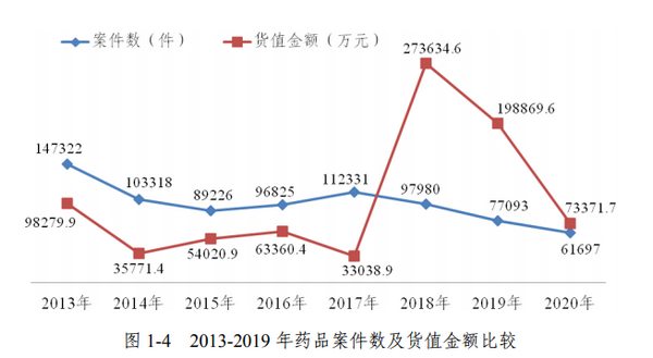 此外,2020年共查處藥品案件6.17萬(wàn)件,同比減少19.97%。查處藥品案件貨值金額7.34億元,同比減少63.11%。從貨值劃分來(lái)看,貨值10萬(wàn)元以下的案件占藥品案件總數(shù)的99.53%。從案件貨值金額總額來(lái)看,有8個(gè)省的藥品案件貨值金額總額都超過(guò)了1000萬(wàn)元。貨值50萬(wàn)元以上案件共有95件,同比增加35.71%。其中,貨值1000萬(wàn)元至1億元案件7件,分別為湖南(2)、上海(2)、廣東(1)、新疆(1)、河南(1)查處;1億元以上案件1件,為廣東查處。