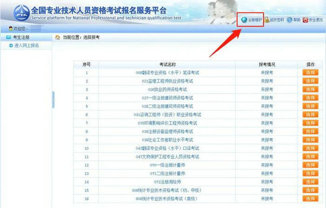 大家可以在保存學(xué)歷信息后的第二天,重新登錄帳號,點擊“注冊維護”;