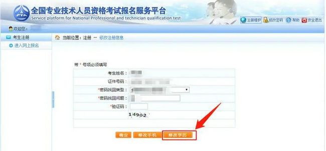 輸入驗證碼,點擊“修改學(xué)歷”;