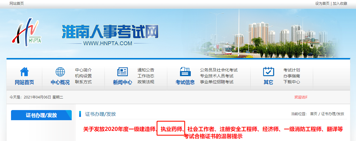 關(guān)于發(fā)放2020年度一級建造師、執(zhí)業(yè)藥師、社會工作者、注冊安全工程師、經(jīng)濟(jì)師、一級消防工程師、翻譯等考試合格證書的溫馨提示