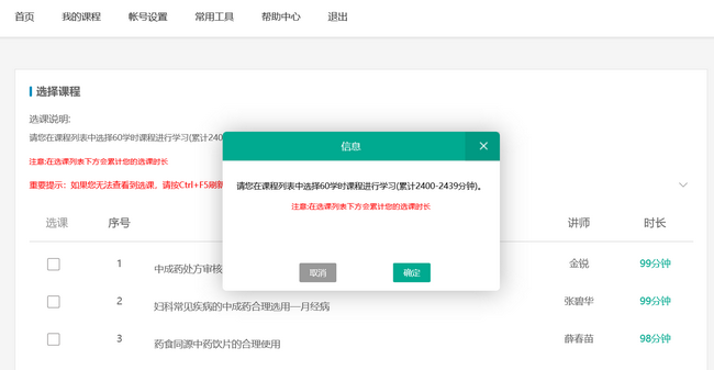 2、選課完成后,點(diǎn)擊選課,并確定。