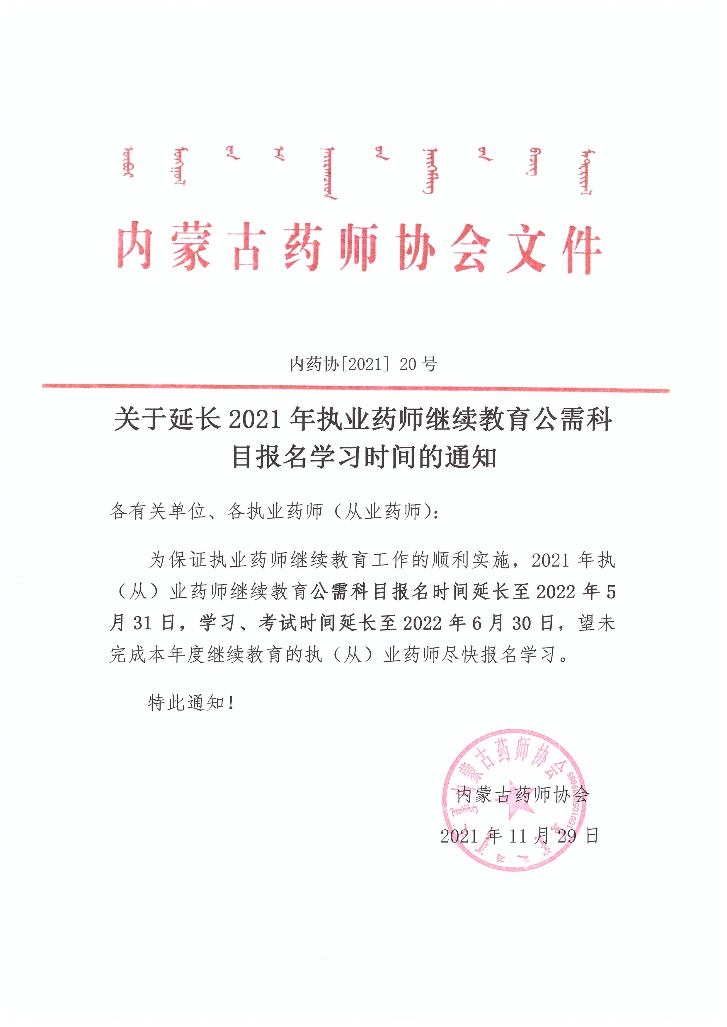 內(nèi)蒙古延長(zhǎng)2021年執(zhí)業(yè)藥師繼續(xù)教育公需科目報(bào)名學(xué)習(xí)時(shí)間!