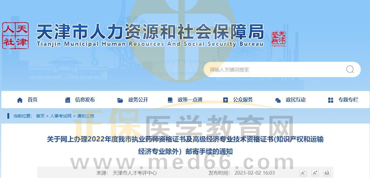 關(guān)于網(wǎng)上辦理2022年度天津市執(zhí)業(yè)藥師資格證書郵寄手續(xù)的通知
