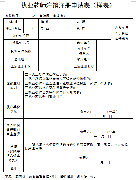 執(zhí)業(yè)藥師注銷注冊申請表: 注銷注冊申請表