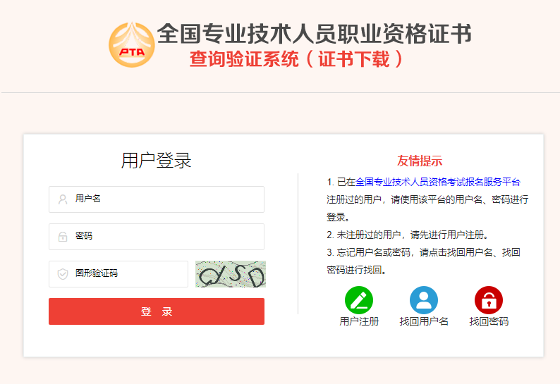 中國人事考試網(wǎng)——“證書查驗(yàn)”——“證書下載”——輸入用戶名和密碼