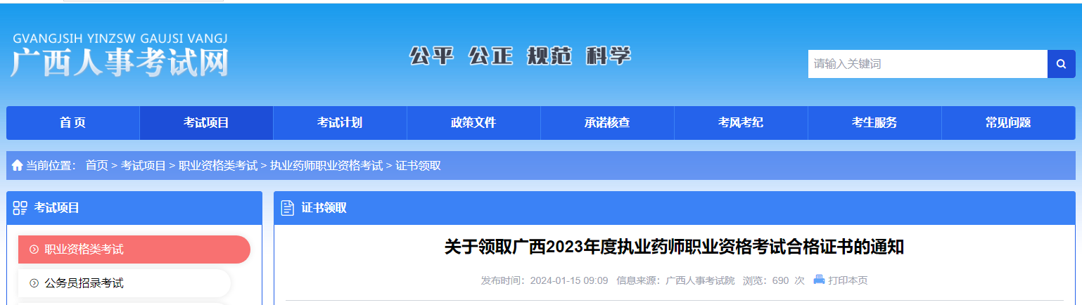 【廣西】2023年度執(zhí)業(yè)藥師職業(yè)資格考試合格證書的通知