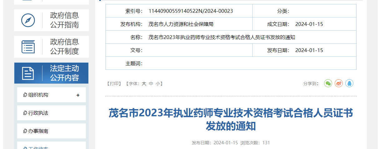 【廣東茂名】2023年執(zhí)業(yè)藥師專業(yè)技術(shù)資格考試合格人員證書發(fā)放的通知