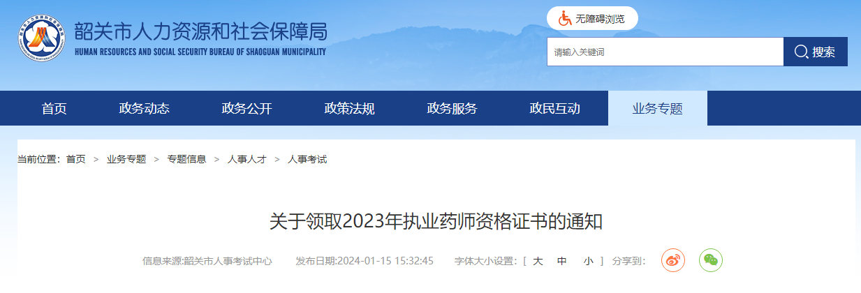 【廣東韶關】關于領取2023年執(zhí)業(yè)藥師資格證書的通知