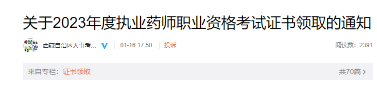 【西藏】關(guān)于2023年度執(zhí)業(yè)藥師職業(yè)資格考試證書領(lǐng)取的通知