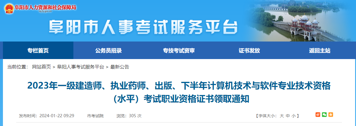 【安徽阜陽】2023年一級建造師、執(zhí)業(yè)藥師、出版、下半年計算機技術與軟件專業(yè)技術資格(水平)考試職業(yè)資格證書領取通知