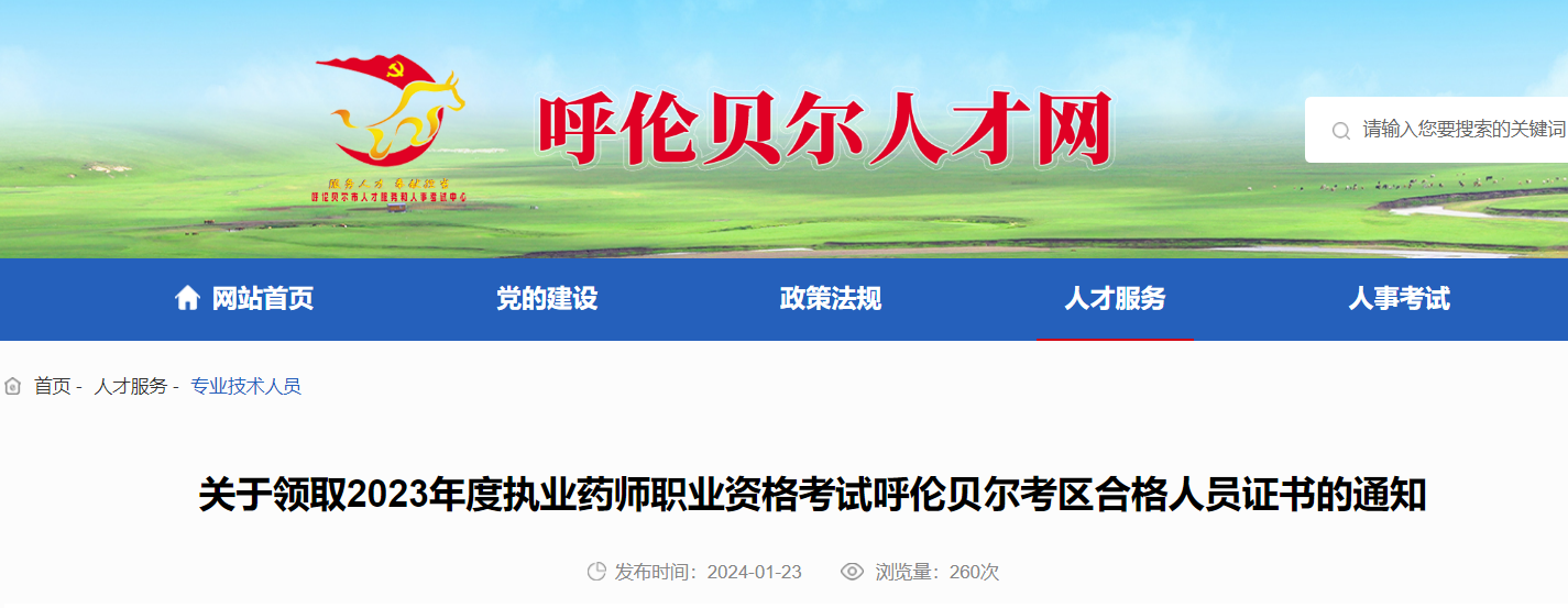【內(nèi)蒙古呼倫貝爾】2023年執(zhí)業(yè)藥師職業(yè)資格考試合格人員證書領(lǐng)取通知