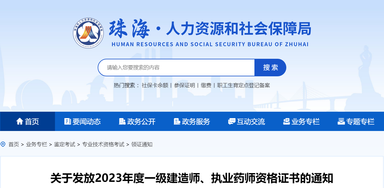我院定于2024年1月15日開始發(fā)放2023年度一級建造師、執(zhí)業(yè)藥師資格證書。考試成績?nèi)坪细袂屹Y格復核通過的珠??紖^(qū)考生,可按以下方式領取: