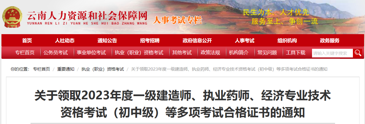 【云南】關于領取2023年執(zhí)業(yè)藥師等多項考試合格證書的通知