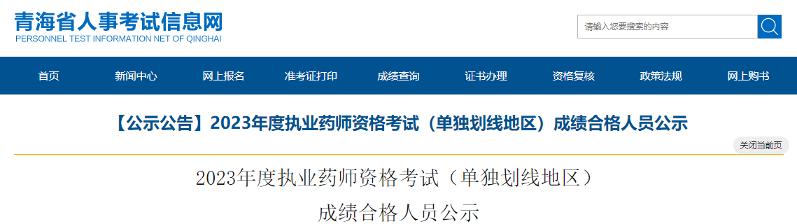 【青?!?023年度執(zhí)業(yè)藥師資格考試(單獨劃線地區(qū))成績合格人員公示