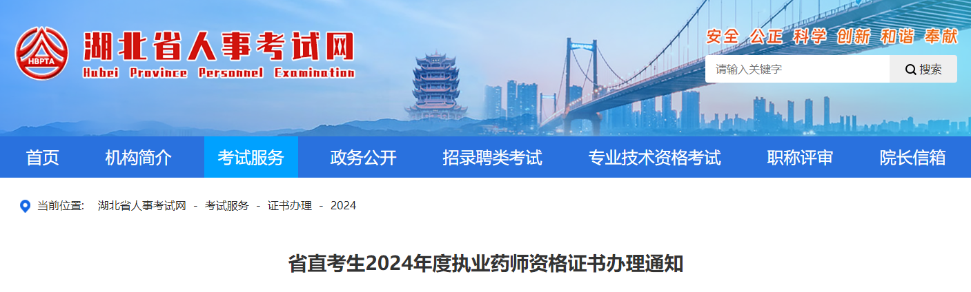 【湖北】省直考生2024年度執(zhí)業(yè)藥師資格證書辦理通知