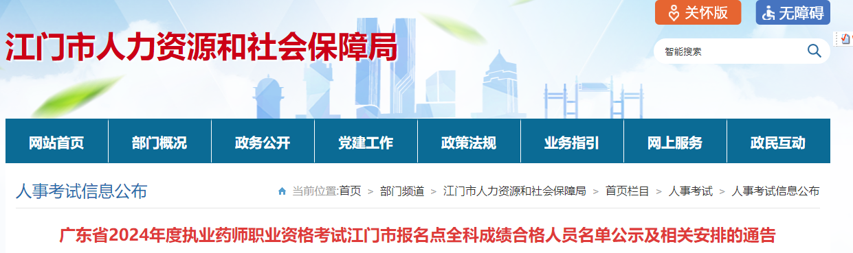 【廣東江門】2024年執(zhí)業(yè)藥師考試全科成績合格人員名單公示及證書領(lǐng)取通知