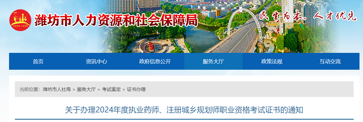 【山東濰坊】關(guān)于辦理2024年度執(zhí)業(yè)藥師、注冊(cè)城鄉(xiāng)規(guī)劃師職業(yè)資格考試證書的通知