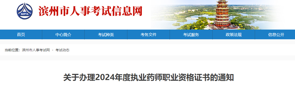 【山東濱州】關(guān)于辦理2024年度執(zhí)業(yè)藥師職業(yè)資格證書的通知
