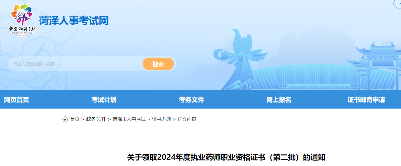 【山東菏澤】關(guān)于領(lǐng)取 2024年度執(zhí)業(yè)藥師職業(yè)資格證書(第二批)的通知