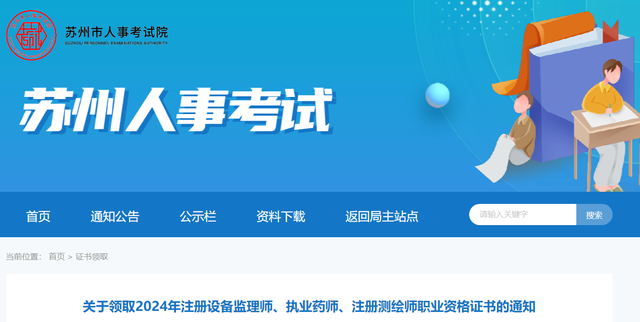 【江蘇蘇州】關(guān)于領(lǐng)取2024年執(zhí)業(yè)藥師、注冊(cè)設(shè)備監(jiān)理師、注冊(cè)測(cè)繪師職業(yè)資格證書(shū)的通知