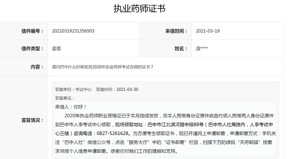 四川巴中2020年執(zhí)業(yè)藥師資格證書(shū)領(lǐng)取通知!