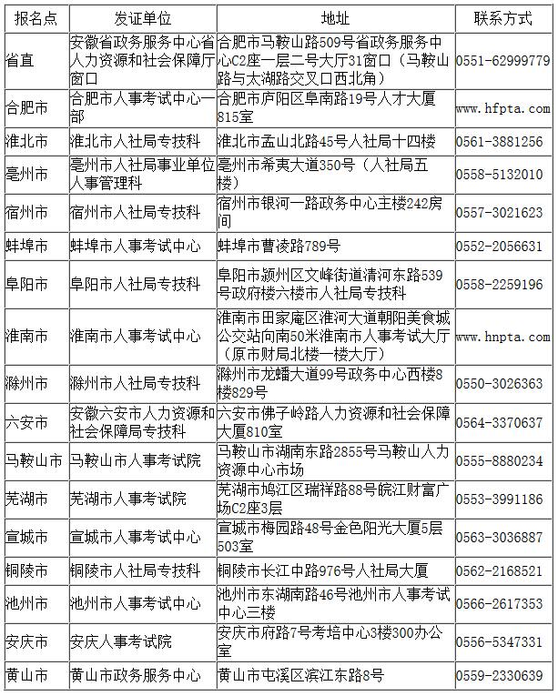 省直及各市報(bào)名點(diǎn)發(fā)證單位地址及聯(lián)系方式