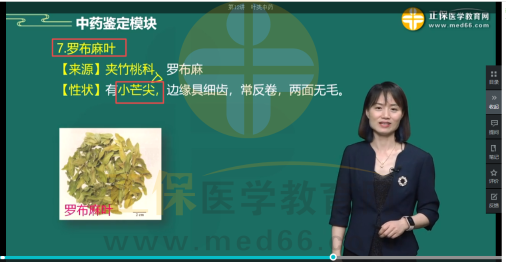 考題:完整葉片展平后呈橢圓狀披針形或卵圓狀披針形,先端鈍,有小芒尖,常反卷,兩面無(wú)毛,葉脈于下表面突起的藥材,基部鈍圓或楔形,邊緣具細(xì)齒的藥材是