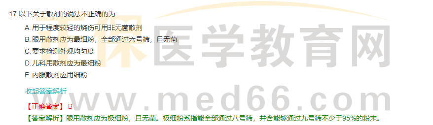 考題:關(guān)于散劑質(zhì)量要求說(shuō)法錯(cuò)誤的是