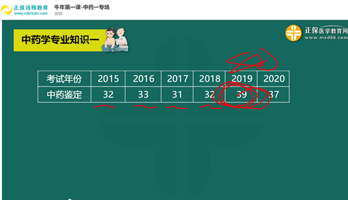 中藥鑒定學分值變化:2019年有39分,大約占總分值的1/3,占比非常高。