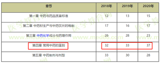 本科目共有5個章節(jié),其中“第四章常用中藥的鑒別”2020年所占分值最高,將近40分,大約是總分的1/3,由此看來該知識重中之重!醫(yī)學(xué)教育網(wǎng)小編為大家整理了262個中藥鑒定的考點集錦!