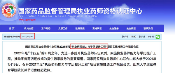 2021年1月19日,國家藥監(jiān)局執(zhí)業(yè)藥師中心召開了2021年度“執(zhí)業(yè)藥師能力與學(xué)歷提升工程”項(xiàng)目實(shí)施推進(jìn)工作視頻會議,本次會議針對進(jìn)一步提升執(zhí)業(yè)藥師隊(duì)伍素質(zhì),實(shí)施執(zhí)業(yè)藥師能力與學(xué)歷提升工程、推動零售藥店逐步成為提供藥學(xué)服務(wù)的重要渠道!