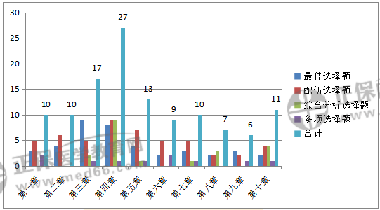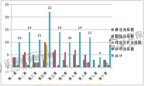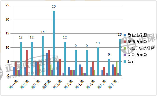 從整體分析,近三年分值占比最多的均是第四章,是唯一一個(gè)章節(jié)考查超過(guò)20分的章節(jié),故第四章屬于重中之重。其次,一、二、三、五、七、十章的分值基本在10分上下,每年會(huì)稍有變動(dòng),但是差別不大。
