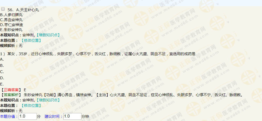 19.某男40歲。近2月來,心神煩亂、失眠多夢、心悸不寧,舌尖紅,脈細(xì)數(shù),醫(yī)師診后認(rèn)為,其病乃因心火亢盛、陰血不足所致。宜選用的成藥是(C)