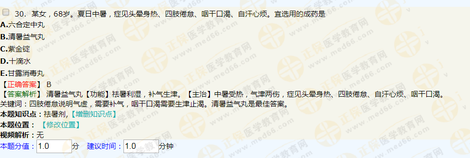 21.某女,55歲,平素體虛,夏日不慎中暑,癥見頭暈身熱、四肢倦怠、自汗心煩、咽干口渴。宜選用的成藥是(D)