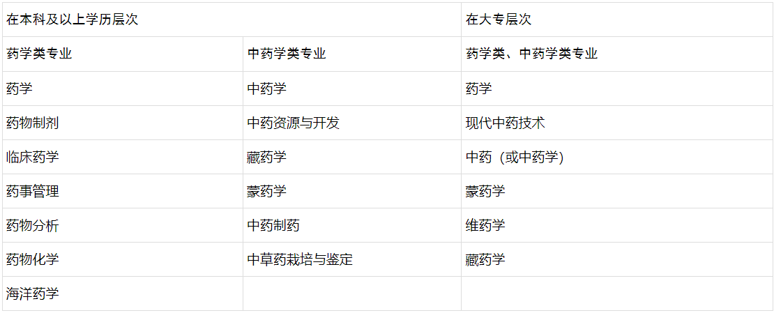 3.取得藥學(xué)類、中藥學(xué)類專業(yè)第二學(xué)士學(xué)位、研究生班畢業(yè)或碩士學(xué)位,在藥學(xué)或中藥學(xué)崗位工作滿1年。