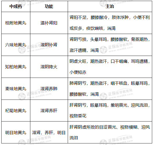 【答案解析】六味地黃丸:全方配伍,三補(bǔ)三瀉,共奏滋陰補(bǔ)腎之功,故善治腎陰虧損所致的頭暈耳鳴、腰膝酸軟、骨蒸潮熱、盜汗遺精、消渴。