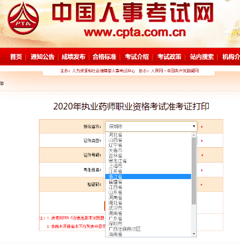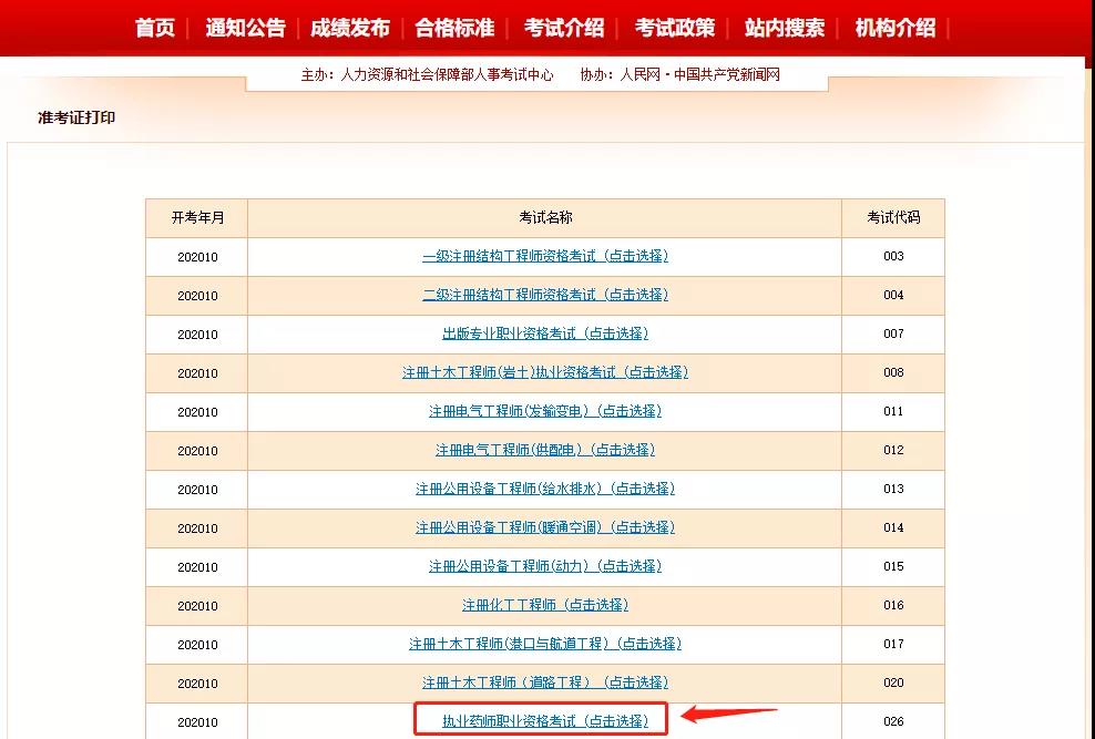 第二步:進(jìn)入準(zhǔn)考證打印界面,選擇“執(zhí)業(yè)藥師資格考試”(當(dāng)執(zhí)業(yè)藥師準(zhǔn)考證可以打印之后,就會(huì)出現(xiàn)打印的入口);