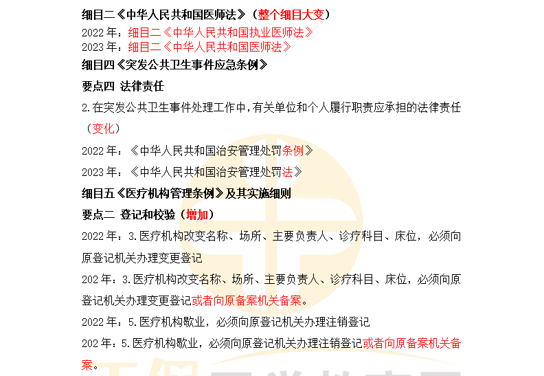 免費下載:2023中西醫(yī)內(nèi)科主治醫(yī)師 《衛(wèi)生法規(guī)》變動匯總