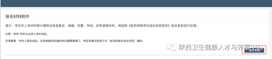 【陜西人才與外事交流中心】您的醫(yī)師資格考試報(bào)名材料照片,有新的審核通知,請(qǐng)?jiān)?24 小時(shí)之內(nèi)登陸報(bào)名網(wǎng)站,訪問(wèn)報(bào)名材料上傳頁(yè)面,查看消息并按要求處理。