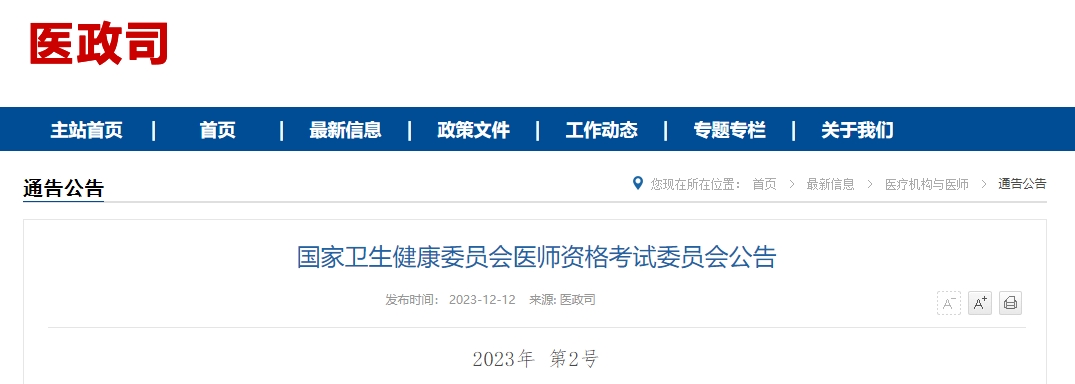 國(guó)家衛(wèi)生健康委員會(huì)醫(yī)師資格考試委員會(huì)公告
