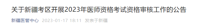 關(guān)于新疆考區(qū)開展2023年醫(yī)師資格考試資格審核工作的公告