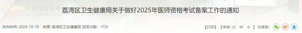 廣東廣州荔灣區(qū)2025年中西醫(yī)執(zhí)業(yè)醫(yī)師考試報名備案10月31日截止