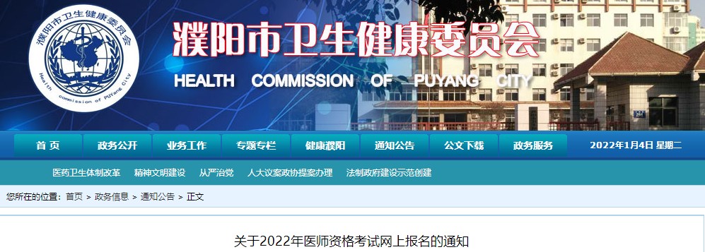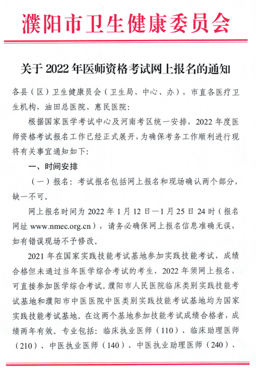 河南考區(qū)2022年中西醫(yī)執(zhí)業(yè)醫(yī)師資格考試濮陽考點(diǎn)考試報(bào)名公告
