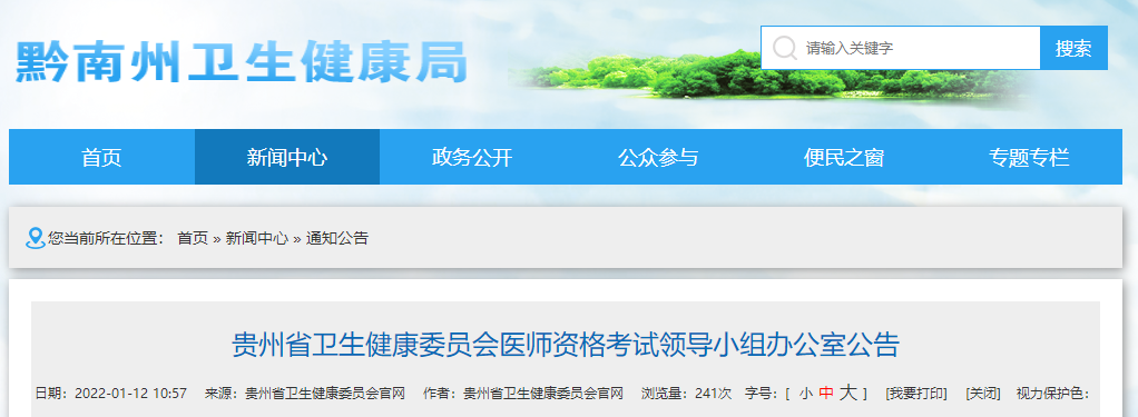 貴州省衛(wèi)生健康委員會(huì)醫(yī)師資格考試領(lǐng)導(dǎo)小組辦公室公告