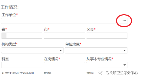 報名到“工作情況”,選擇“工作單位”后面省略號