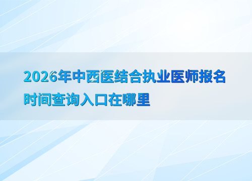 2026年中西醫(yī)結(jié)合執(zhí)業(yè)醫(yī)師報(bào)名時(shí)間查詢(xún)?nèi)肟谠谀睦?/h1>