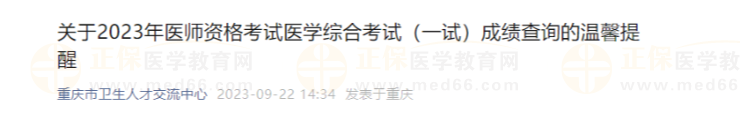 重慶考區(qū)2023年中西醫(yī)執(zhí)業(yè)醫(yī)師筆試考試成績查詢溫馨提醒