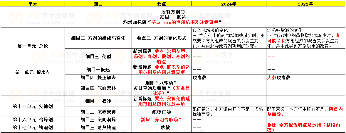 2025年中西醫(yī)執(zhí)業(yè)醫(yī)師考試《方劑學(xué)》官方教材變動(dòng)變動(dòng)匯總