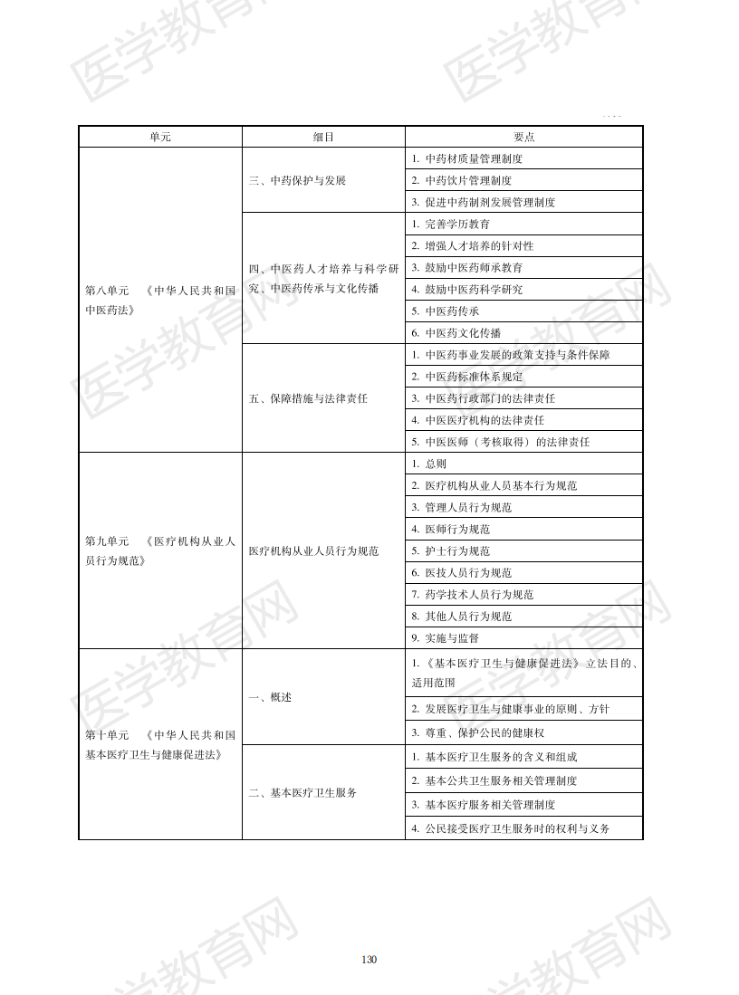 2021年中西醫(yī)結(jié)合執(zhí)業(yè)醫(yī)師資格考試用書及考試大綱正式發(fā)布!從2021年開始,中醫(yī)中西醫(yī)結(jié)合執(zhí)業(yè)(助理)醫(yī)師資格考試衛(wèi)生法規(guī)部分啟用修訂版大綱,除法規(guī)外其余部分大綱繼續(xù)使用《醫(yī)師資格考試大綱(中醫(yī)、中西醫(yī)結(jié)合)2020年版》。醫(yī)學(xué)教育網(wǎng)編輯為您整理衛(wèi)生法規(guī)考試大綱原文下載——2021年中西醫(yī)結(jié)合執(zhí)業(yè)醫(yī)師考試大綱內(nèi)容如下: