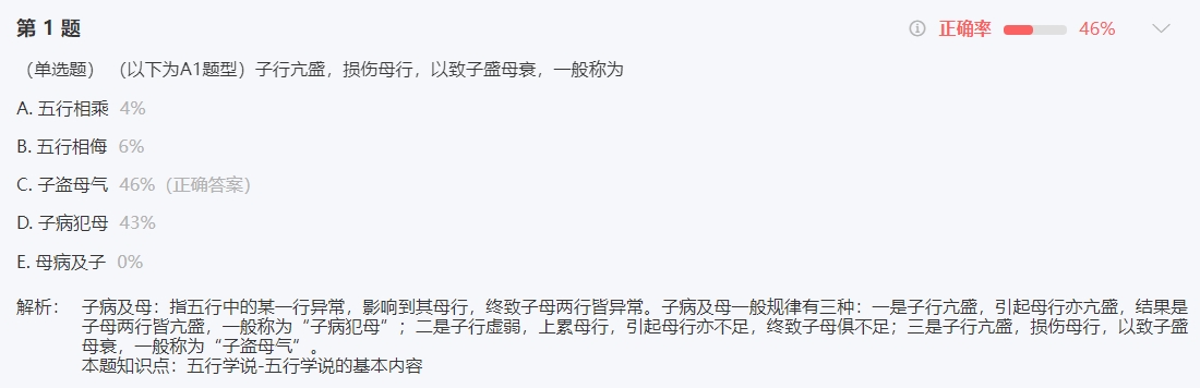 2024中西醫(yī)助理醫(yī)師摸底測(cè)試題:子行亢盛,損傷母行,以致子盛母衰,一般稱為